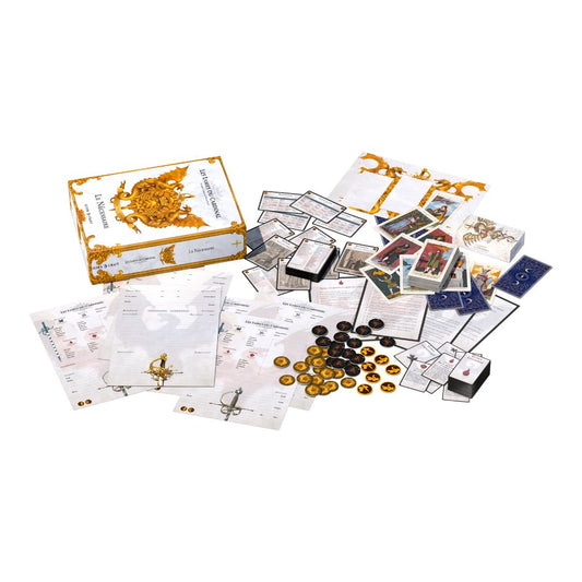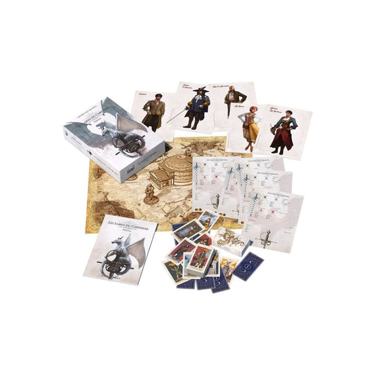 Initiez-vous au jeu de rôle officiel adapté de la série de romans de Pierre Pevel ! Plongez dans un XVIIe siècle rigoureusement historique, si ce n’est que les dragons ont jadis régné sur la Terre et, grâce à leur magie, se dissimulent désormais parmi les hommes. Ce coffret contient un livret de 96 pages incluant les règles du jeu et les éléments permettant de créer vos personnages, ainsi que deux scénarios originaux pour découvrir l’univers des Lames du Cardinal, mais aussi dix fiches de personnages, une carte des lieux et un Tarot des Ombres.
